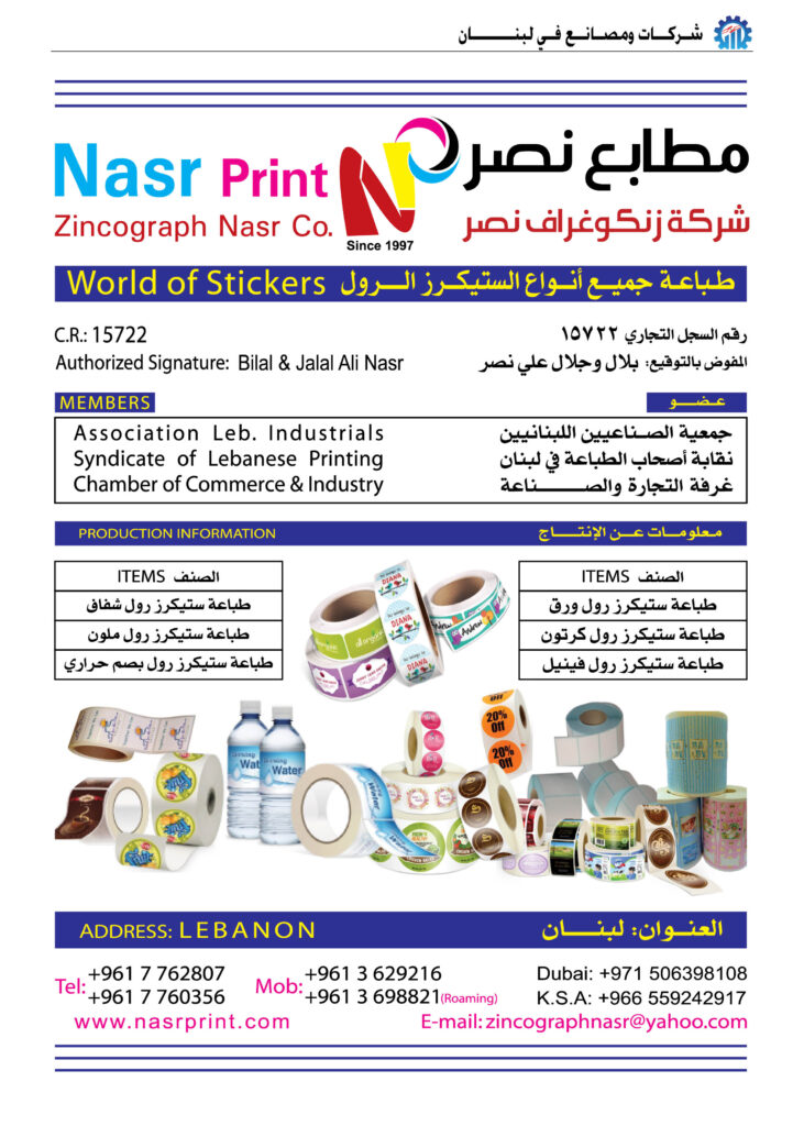 لبنان - الجنوب - تولالنبطية,961 Show phone number9613629216+ - 9613698821+ - 9617762807+ - 9617760356+ zincographnasr@yahoo.com https://www.nasrprint.com