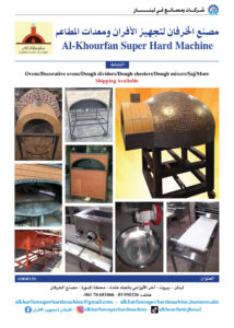 Ovens/Decorative ovens/Dough dividers/Dough sheeters/Dough mixers/Saj/More Shipping Available Facebook: Al Khourfan Tejhez Afran Instagram:alkharfansuperhardmachine TikTok: alkhourfantejheza2