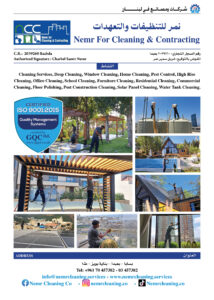 Cleaning Services, Deep Cleaning, Window Cleaning, Home Cleaning, Pest Control, High Rise Cleaning, Office Cleaning, School Cleaning, Furniture Cleaning, Residential Cleaning, Commercial Cleaning, Floor Polishing, Post Construction Cleaning, Solar Panel Cleaning, Water Tank Cleaning. Facebook: Nemr Cleaning Co Instagram: nemrcleaning.co